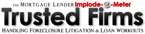The ML-Implode "Trusted Firms" list is a paid listing service. Companies must pay us a monthly fee to be listed. However, it is not a paid endorsement service. Companies are evaluated by a panel of Industry Professionals and/or ML-Implode staff autonomously or for an evaluation fee, which is charged on a cost-recovery basis when firms approach us to be listed. ML-Implode is not contractually obligated to list a company which fails the evaluation, and any listing fees paid in advance are returned in such an event. ML-Implode also reserves the right to remove the company at any time should information surface that changes our opinion of them, or for any other reason, with pro-rated listing fees refunded. No express or implied warranty is inherent in the ML-Implode "Trusted Firms" listing. It is a starting point for assistance with your foreclosure or mortgage issue; however, it is not a guarantee. No evaluation is perfect. Do your own follow-up diligence. If problems are encountered with one of the Trusted Firms, please report them to us at trusted@ml-implode.com. Your feedback is an important ingredient of keeping the list to the highest possible quality. © 2009 IEHI, Inc. The "Trusted Firms List" and all related pages are All Rights Reserved. |